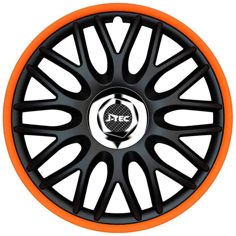 Satz J-Tec Radzierblenden Orden R 15-Zoll Schwarz/Orange + Chrom Ringe