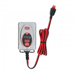 Das Carpoint BX-4M Batterieladegerät eignet sich zum Laden von 6- und 12-Volt-Blei-Säure-Batterien mit 1,2 bis 20 Ampere. Das Ladegerät durchläuft einen vollautomatischen Ladezyklus in 5 Stufen: Erholungsphase, hochentladene Batterie kann wiederhergestellt werden. Bulk-Phase, maximaler Ladestrom von 80% der Energie wird geladen. Absorptionsphase, Laden bis fast 100% erreicht ist. Analysephase, Überprüfung des Ladezustandes. Float-Phase, die Batterie ist vollständig geladen und wird mit einem geringen Ladestrom auf dem maximalen Stand gehalten. Der Ladestrom beträgt maximal 1 Ampere. Das CP-4M Batterieladegerät wird mit zwei unterschiedlich farblich gekennzeichneten Kabeln geliefert. Ein Kabel mit Batterieklemmen zum Laden abgeklemmter Batterien und ein Kabel mit Ösenklemmen (Ø6,3 mm) und 10-Ampere-Sicherung für fest angeschlossene Batterien. Beide Kabel sind mit einer Schnellkupplung ausgestattet. Übersichtliches Display mit: Modustaste zum Umschalten zwischen 6 und 12 Volt, Kontrollleuchten (Fehlermeldung und 6- oder 12-Volt-Modus), Ladekontrollleuchte, die anzeigt, in welcher der 5 Stufen des Ladezyklus gerade geladen wird.