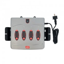 Dieses Carpoint BX-6 Batterieladegerät eignet sich zum gleichzeitigen Laden von bis zu vier 12 Volt 1,2-120Ah Blei-Säure-Akkus. Das Batterieladegerät durchläuft einen vollautomatischen Ladezyklus in 5 Stufen. Diagnose- und Hauptladephase, prüft automatisch den Ladezustand der Batterie und startet die Impulsladung. Bulk-Phase, maximaler Ladestrom von 80% der Energie wird geladen. Absorptionsphase, Laden bis fast 100% erreicht sind. Tropf-Ladephase, die Batterie wird auf maximalem Niveau gehalten. Erhaltungsladephase, beginnt, wenn die Batteriespannung unter einen bestimmten Wert fällt. Maximaler Ladestrom 16 Ampere. Das CP-6 Batterieladegerät wird mit vier Kabelsätzen zum Laden von Batterien geliefert, alle Sätze haben zwei unterschiedlich farbcodierte Kabel mit Batterieklemmen. Alle Kabel sind mit einer Schnelltrennvorrichtung ausgestattet. Vier separate Anzeigen für jede zu ladende Batterie, jede Anzeige hat eine Modus-Taste zum Umschalten zwischen verschiedenen Lademodi und Kontroll-LEDs für falsche Polarität und vier LED-Leuchten, die den Ladeprozentsatz anzeigen (25/50/75 oder 100% voll).