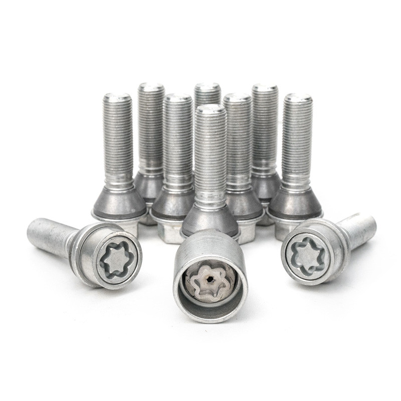 H&R Radschrauben Satz Kegelbund mit bewegliche Kegelbund M14x1.25 - Länge 28mm - 10 Stück (z.B. passend für BMW) - inkl. Felgenschloss
