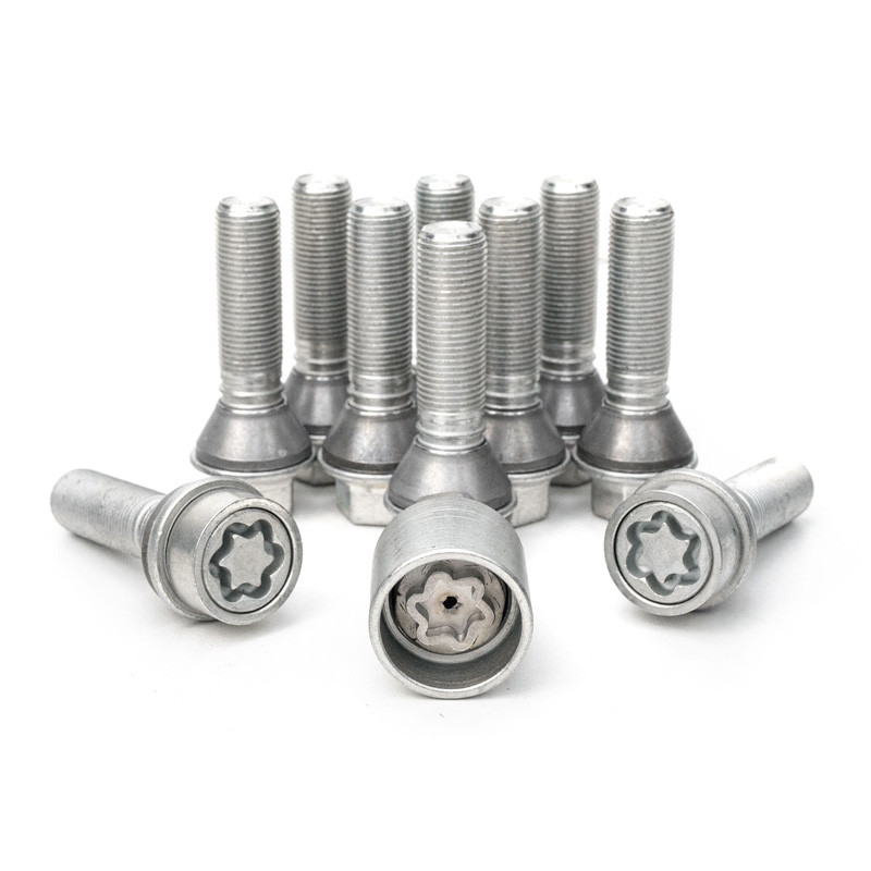 H&R Radschrauben Satz Kegelbund mit bewegliche Kegelbund M14x1.25 - Länge 41mm - 10 Stück (z.B. passend für BMW) - inkl. Felgenschloss