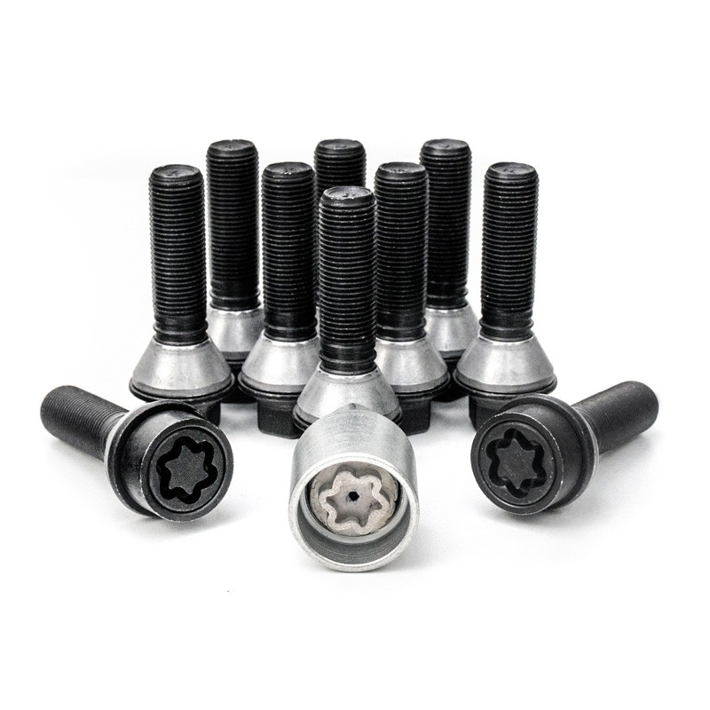 H&R Radschrauben Satz Kegelbund mit bewegliche Kegelbund M14x1.25 - Länge 48mm - Schwarz - 10 Stück (z.B. passend für BMW) - inkl. Felgenschloss