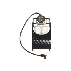 Die Carpoint Fußpumpe mit Doppelzylinder und Manometer hat eine solide Stahlkonstruktion und ein rutschfestes Fußpedal. Dank der mitgelieferten Adapter ist die Fußpumpe für Autoreifen, aufblasbare Spielzeuge, Fahrradreifen und Sportbälle geeignet.