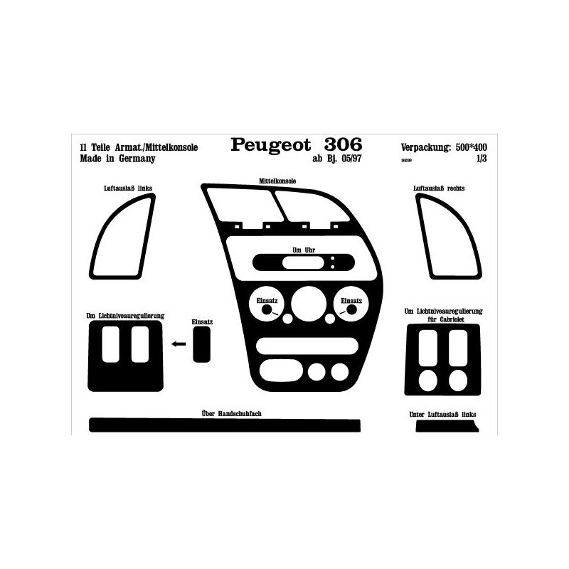 Prewoodec Interieursatz Peugeot 306 5/1997- 11-teilig - Aluminium