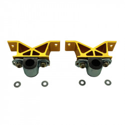 Whiteline heavy duty rear sway bar mounting saddle kits are designed to replace the original equipment mounts with a stronger more rigid forged alloy version. This Whiteline kit improves sway bar response and should be used for large diameter or adjustable sway bars especially when running the stiffer sway bar settings as factory mounts will twist/ flex and potentially fail prematurely.