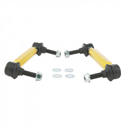Not many enthusiasts are aware that OE and more importantly aftermarket sway bar effectiveness can be hindered by worn or inadequate mounts, drop links and lateral stoppers. Whiteline adjustable sway bar links are engineered to be up to the task with top spec, light weight componentry combined with a window of adjustability, eliminating sway bar preload on installation but most importantly ensuring the maximum output of the sway bar for improved grip and better handling.