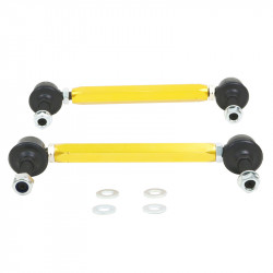 Not many enthusiasts are aware that OE and more importantly aftermarket sway bar effectiveness can be hindered by worn or inadequate mounts, drop links and lateral stoppers. Whiteline adjustable sway bar links are engineered to be up to the task with top spec, light weight componentry combined with a window of adjustability, eliminating sway bar preload on installation but most importantly ensuring the maximum output of the sway bar for improved grip and better handling.