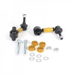 Not many enthusiasts are aware that OE and more importantly aftermarket sway bar effectiveness can be hindered by worn or inadequate mounts, drop links and lateral stoppers. Whiteline adjustable sway bar links are engineered to be up to the task with top spec, light weight componentry combined with a window of adjustability, eliminating sway bar preload on installation but most importantly ensuring the maximum output of the sway bar for improved grip and better handling.