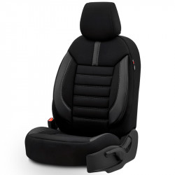 Universelle Stoff/Leder Sitzbezüge 'Limited' Schwarz + Graue Nähten - 11-Teilig- - passend für Side-Airbags