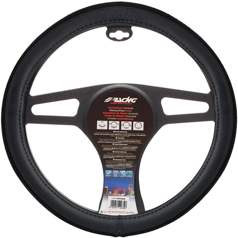 Simoni Racing Lenkradbezug 500 - Schwarz Ökoleder/Baumwolle - 37-39cm