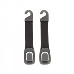 - Abmessung 187x38mm - Satz von 2 Stück - Zur Verwendung an Kopfstützen oder z.B. an einem Deckengriff. - Kann für das Aufhängen von Taschen, Mänteln, Bügeln usw. verwendet werden. - Kann auch mit dem Haken befestigt werden.