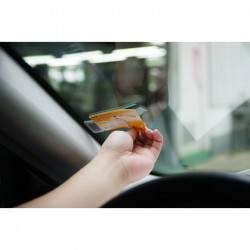 - Abmessungen 75x40x2mm - Satz à 2 Stück - Selbstklebend mit 3M-Band - Transparent, ideal für die Montage an der Frontscheibe. - Ihr Ticket ist gut sichtbar