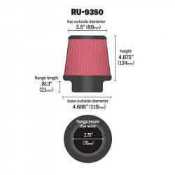 K&N universal Konisch Filter 70mm Anschluss, 119mm Untendiameter, 89mm Obendiameter, 124mm