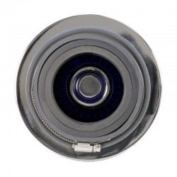 Technische Daten: Produktart: Runder, konischer Universal-Luftfilter Form des Luftfilters: Rund, konisch Außendurchmesser der Basis: 6 Zoll (152 mm) Außendurchmesser der Oberseite: 4,75 Zoll (121 mm) Innendurchmesser des Flansches: 4 Zoll (102 mm) Innendurchmesser des Flansches 2: 3,5 Zoll (89 mm) Flanschinnendurchmesser 3: 76 mm Flanshlänge: 29 mm Flanschtyp: zentriert Höhe: 140 mm Filtermaterial: Baumwollgaze Oberteil: Metall Oberteilmaterial/Oberfläche: Chrom Farbe: Blau