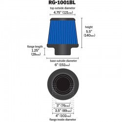 K&N RG-Serie Universal Luftfilter mit 3 Anschlussdiametern Blau (RG-1001BL-L)