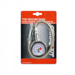 Messen Sie den Reifendruck genau mit diesem Carpoint Reifendruckmesser Hafner. Das Reifendruckmessgerät hat einen Messbereich von 0,5 bis 4 Bar und 0,7 bis 58 PSI. Setzen Sie einfach die Düse auf das Ventil und drücken Sie 1 bis 2 Sekunden lang fest auf das Ventil. Entfernen Sie das Manometer vom Ventil und der gemessene Reifendruck kann abgelesen werden. Mit langem, flexiblem Schlauch und stoßfestem Gehäuse. Es wird empfohlen, den Reifendruck des Fahrzeugs regelmäßig zu überprüfen, da der richtige Druck unnötigen Reifenverschleiß verhindert, einen besseren Fahrkomfort bietet und den Kraftstoffverbrauch senkt.