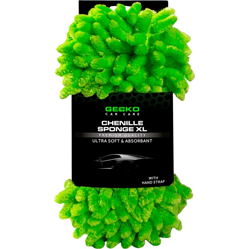 Applications La Gecko 2in1 Chenille Sponge XL est idéale pour laver les voitures, les motos, les bateaux et bien plus encore. Les longues fibres de chenille la rendent parfaite pour les endroits difficiles d'accès, tels que les joints, les bords et les détails des jantes.