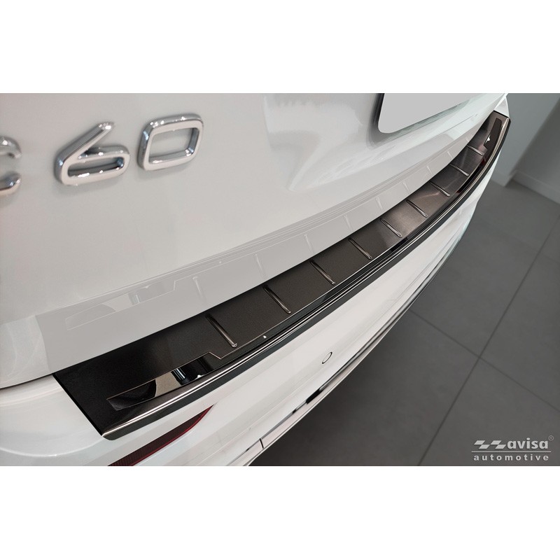 Avisa Protection de Seuil de Coffre Acier Inox Shadow Premium sur mesure pour Volvo XC60 II 2017-2021 & Facelift 2021- incl. R-Design & Plug-in-Hybrid - Noir / Noir Brillant