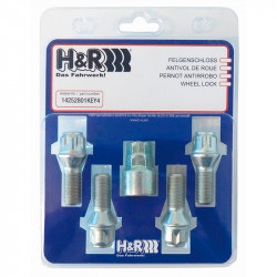 Jeu de antivol de roue H&R R13 M14x1.50x27mm sphérique - 4 boulons antivol de roues avec adaptateur