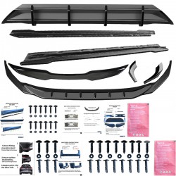 Le kit comprend : spoiler avant, spoiler arrière, bas de caisse, diffuseur, splitters latéraux arrière