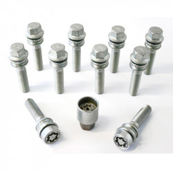 Jeu de Boulons de roue H&R sphérique avec col mobile R14 M14x1.50 - Longueur 54mm - 10 pièces - antivol de roue inclus