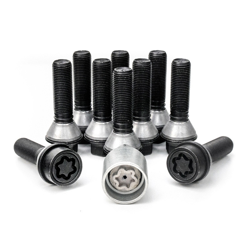 Jeu de Boulons de roue H&R conique avec col mobile M14x1.25 - Longueur 28mm - Noir - 10 pièces (p.e. sur mesure pour BMW) - antivol de roue inclus