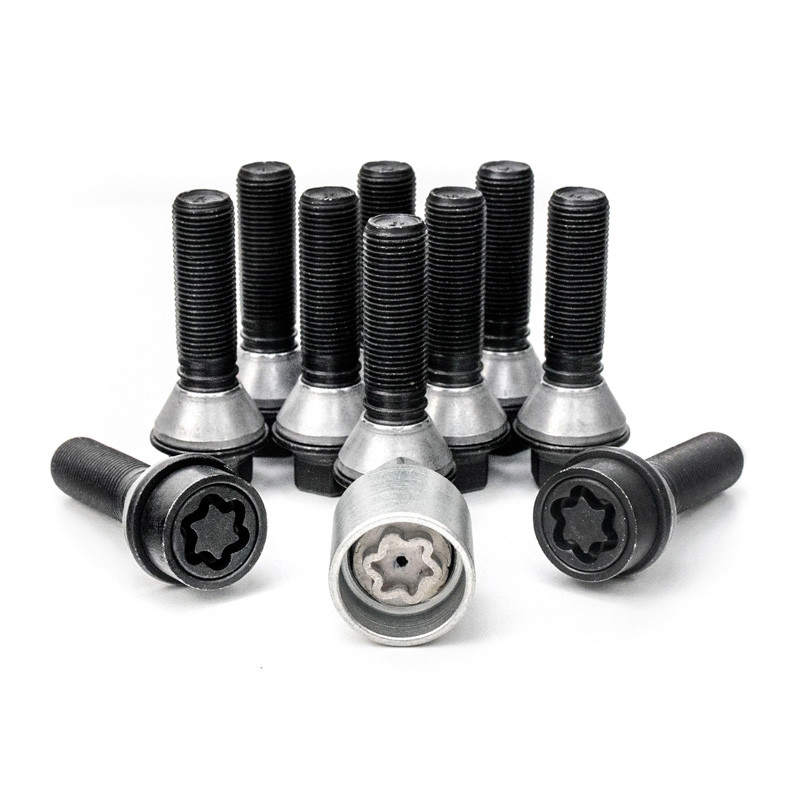 Jeu de Boulons de roue H&R conique avec col mobile M14x1.25 - Longueur 46mm - Noir - 10 pièces (p.e. sur mesure pour BMW) - antivol de roue inclus