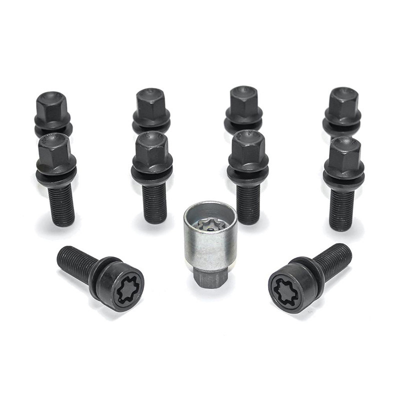 Jeu de Boulons de roue H&R sphérique avec cône mobile R13 M14x1.50 - Longueur 32mm - Noir - 10 pièces (p.e. sur mesure pour Audi S5) - antivol de roue inclus