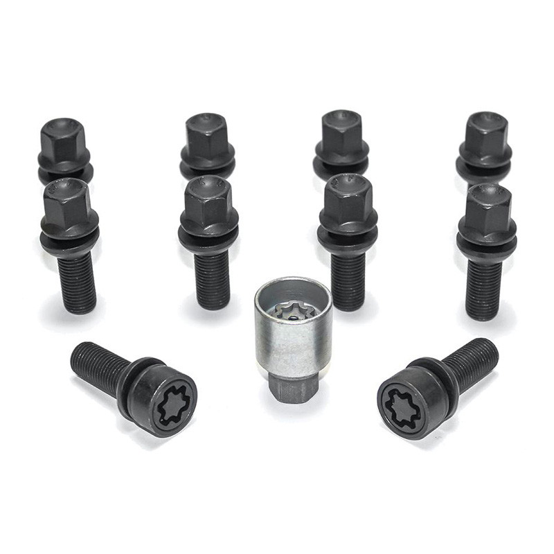 Jeu de Boulons de roue H&R sphérique avec cône mobile R13 M14x1.50 - Longueur 36mm - Noir - 10 pièces (p.e. sur mesure pour Audi S5) - antivol de roue inclus