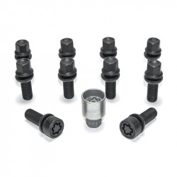Jeu de Boulons de roue H&R sphérique avec cône mobile R13 M14x1.50 - Longueur 39mm - Noir - 10 pièces (p.e. sur mesure pour Audi S5) - antivol de roue inclus