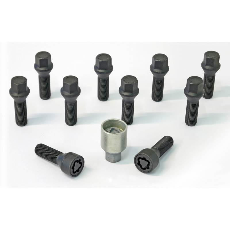 Jeu de Boulons de roue H&R conique M14x1.50 - Longueur 40mm - Noir - 10 pièces - antivol de roue inclus
