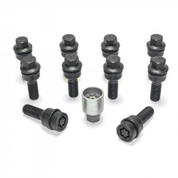 Jeu de Boulons de roue H&R sphérique avec cône mobile R14 M14x1.50 - Longueur 40mm - Noir - 10 pièces (p.e. sur mesure pour Audi Q3, Q5) - antivol de roue inclus