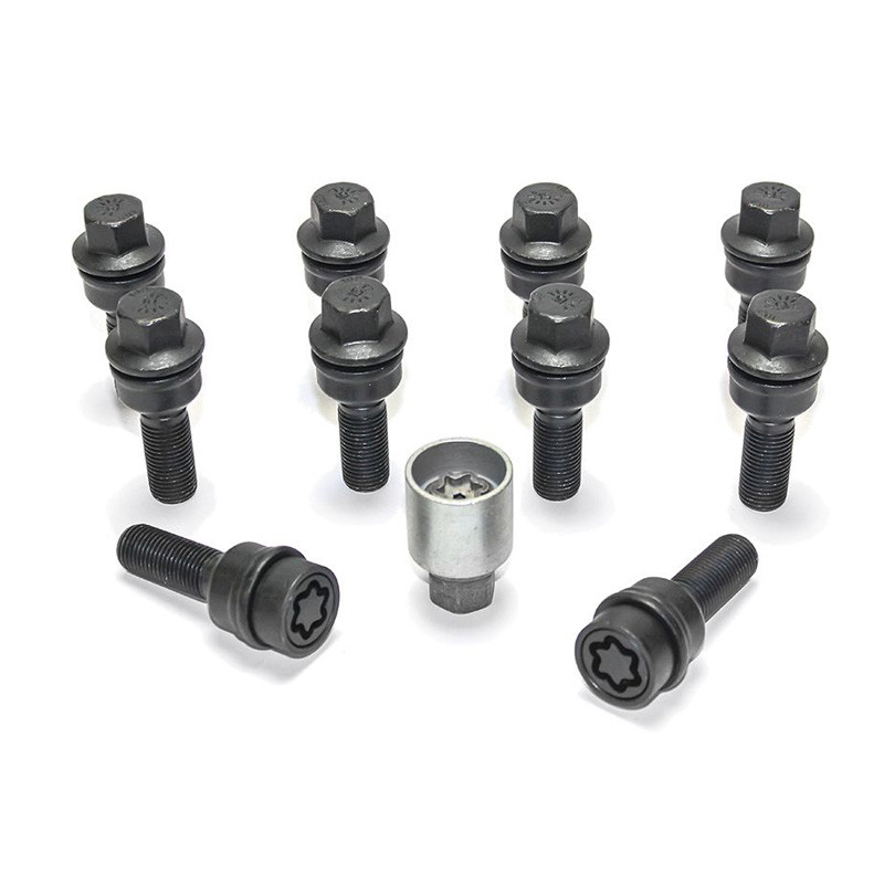 Jeu de Boulons de roue H&R sphérique avec cône mobile R14 M14x1.50 - Longueur 42mm - Noir - 10 pièces (p.e. sur mesure pour Audi Q3, Q5) - antivol de roue inclus