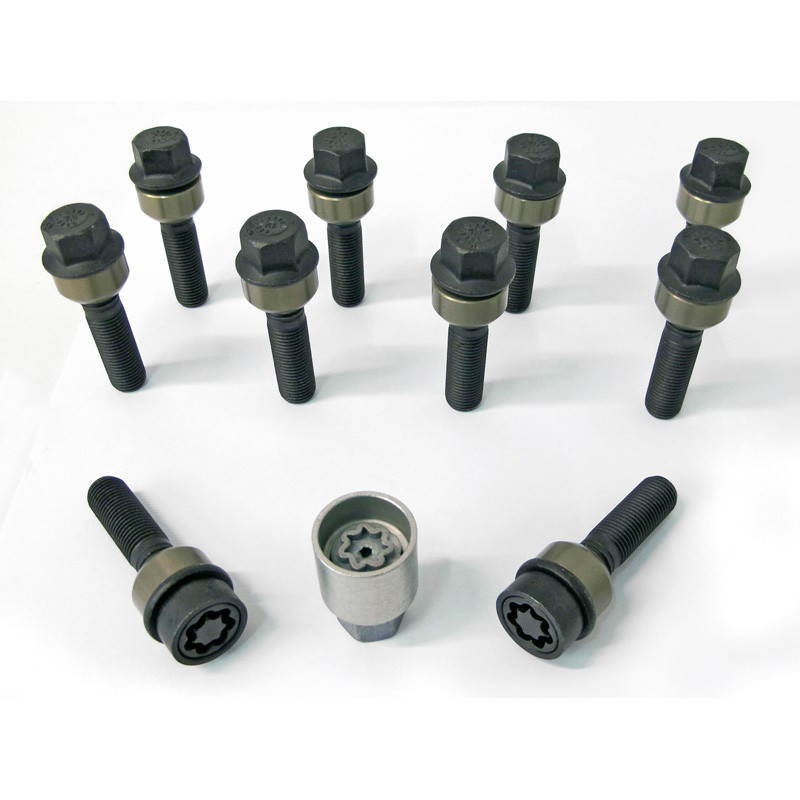 Jeu de Boulons de roue H&R sphérique avec col mobile R14 M14x1.50 - Longueur 44mm - Noir - 10 pièces (p.e. sur mesure pour Porsche) - antivol de roue inclus