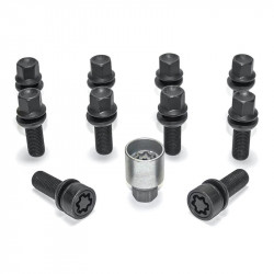 Jeu de Boulons de roue H&R sphérique avec cône mobile R13 M14x1.50 - Longueur 48mm - Noir - 10 pièces (p.e. sur mesure pour Audi S5) - antivol de roue inclus