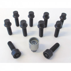 Jeu de Boulons de roue H&R sphérique R14 M14x1.50 - Longueur 55mm - Noir - 10 pièces - antivol de roue inclus
