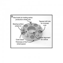 L'élargisseur doit être montée sur le moyeu axial à l'aide des boulons de fixation fournis. Les roues doivent ensuite être montées à l'aide des boulons de roue d'origine fournis avec les roues. L'utilisation de jantes en acier en combinaison avec un système DRM n'est généralement pas possible.