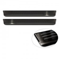Seuils de portes inoxydable noir sur mesure pour Volkswagen Caddy V 2020- 'Lines' - 2-pièces