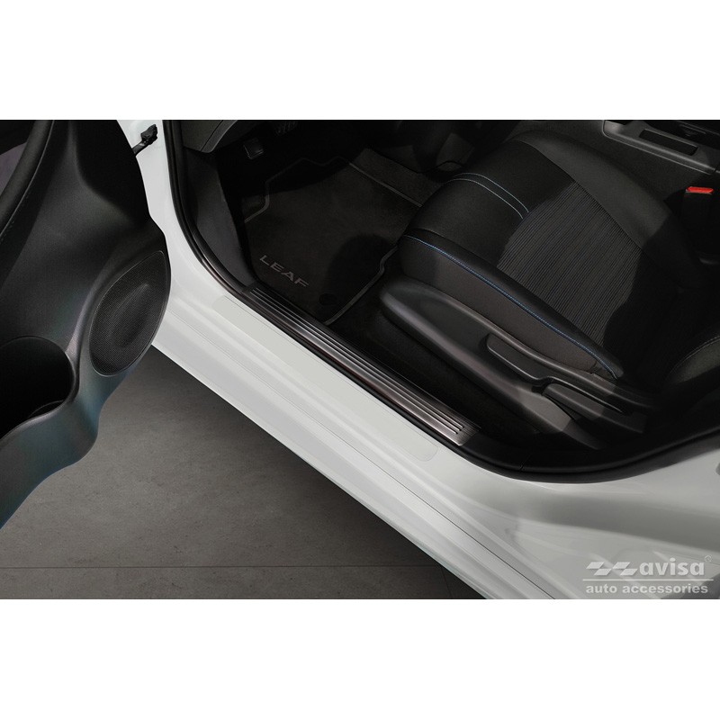 Avisa Seuils de portes inox noir sur mesure pour Nissan Leaf II 2017- - 'Lines' - 4-pièces