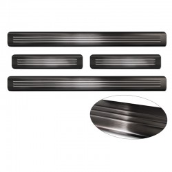 Seuils de portes inox noir sur mesure pour Nissan Leaf II 2017- - 'Lines' - 4-pièces