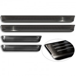 Seuils de portes inoxydable noir sur mesure pour Volkswagen Tiguan II 2016-2020 & FL 2020- incl. Allspace 2017-2020 & FL 2020-2024 - 'Lines' - 4-pièces