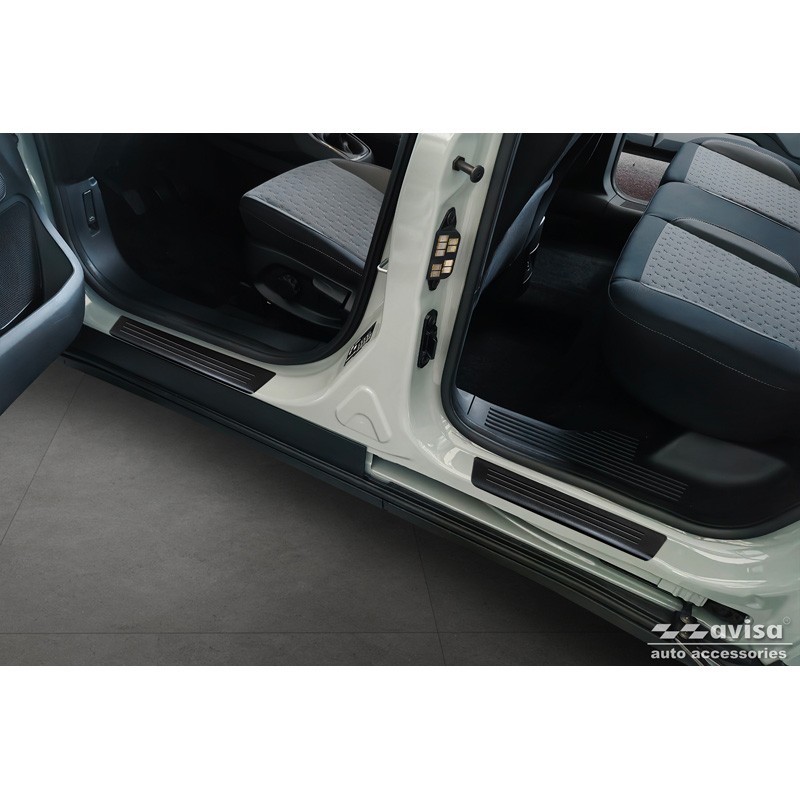 Avisa Seuils de portes inoxydable noir sur mesure pour Ford Tourneo Courier II 2023- 'Lines' - 4-pièces