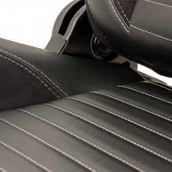 AutoStyle Siège baquet 'Classic II' - Simili Cuir Noir + suède + Surpiqûres gris - Dossier réglable à droite - incl. glissières
