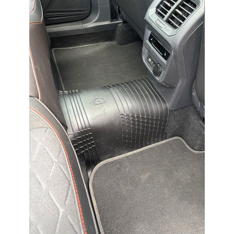Grâce à sa forme universelle, ce tapis s'adapte à presque toutes les voitures. Grâce aux différentes lignes de découpe dans le tapis, vous pouvez facilement le couper ou le découper pour l'adapter parfaitement à votre voiture.