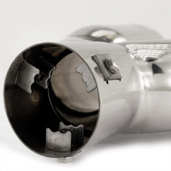 Simoni Racing enjoliveur d’échappement donnent votre voiture un rayonnement sportif dans quelques secondes! Ils ont un prix attractif, ont une qualité haute et ils sont disponibles dans différentes formes et tailles. Vous pouvez choisir des ornements ronds ou ovales, noir ou normal Inox, coupe oblique/coupe droite ou DTM et il y a d’ornements attachés avec 2 ou 3 vis. Vous pouvez également choisir un enjoliveur d’échappement simple ou double.