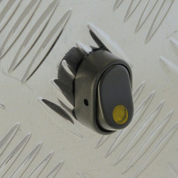 Interrupteur marche/arrêt Carpoint noir avec une LED jaune qui s'allume lorsque l'interrupteur est en fonction. L'interrupteur convient pour 12V et a une charge maximale de 30A. Hauteur de l'interrupteur 17mm à 27mm (point le plus haut). Diamètre du trou de montage 12mm et longueur du fil de montage 7mm.