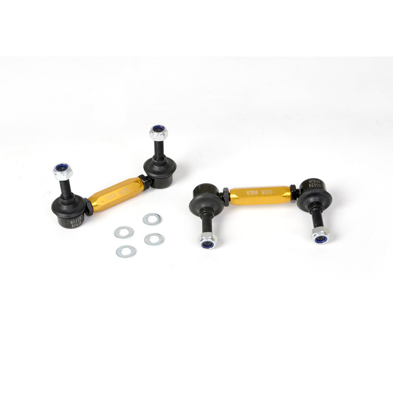 Not many enthusiasts are aware that OE and more importantly aftermarket sway bar effectiveness can be hindered by worn or inadequate mounts, drop links and lateral stoppers. Whiteline adjustable sway bar links are engineered to be up to the task with top spec, light weight componentry combined with a window of adjustability, eliminating sway bar preload on installation but most importantly ensuring the maximum output of the sway bar for improved grip and better handling.