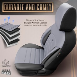 Housse de sièges universel en plein cuir 'Inspire' Noir/Gris - 11-pièces - adapté aux Side-Airbags