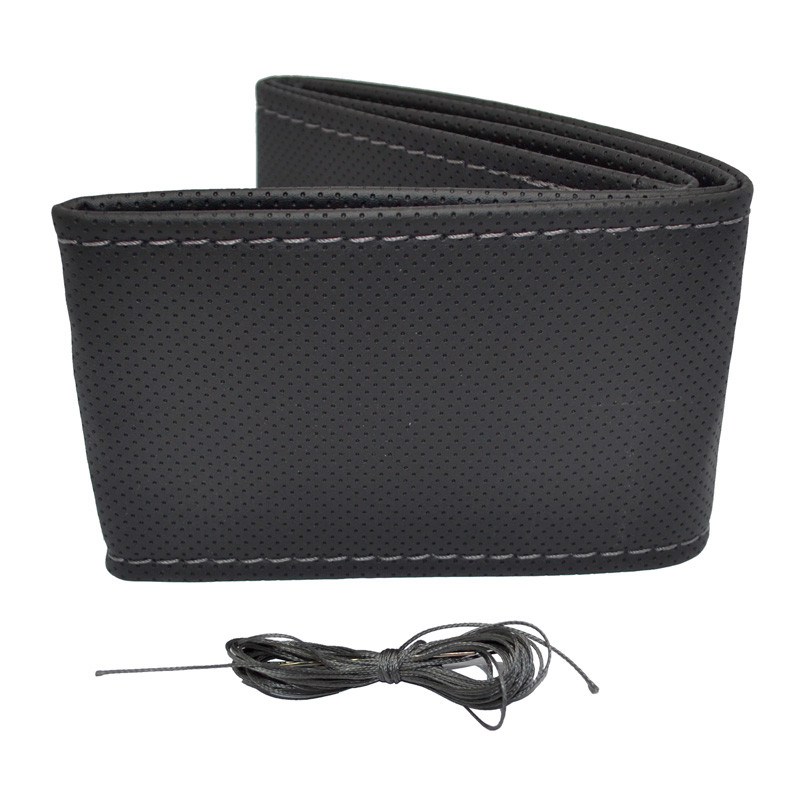 Housse de volant universel Classic - Cuir PVC perforé noir + Couture gris (laçage)
