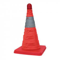 Cône de signalisation extensible Carpoint pour délimiter une zone ou signaler une situation dangereuse. Il est clairement visible grâce à sa couleur orange vif et à ses bandes réfléchissantes tout autour. Doté d'une LED clignotante sur le dessus du cône, il fonctionne avec 2 piles LR03/AAA (non incluses). Le cône de signalisation peut être étendu jusqu'à une hauteur de 39 cm. La base a une dimension de 25x25cm. Il se rétracte de manière compacte pour atteindre une hauteur de seulement 4 cm. Fourni dans un sac de transport pratique.